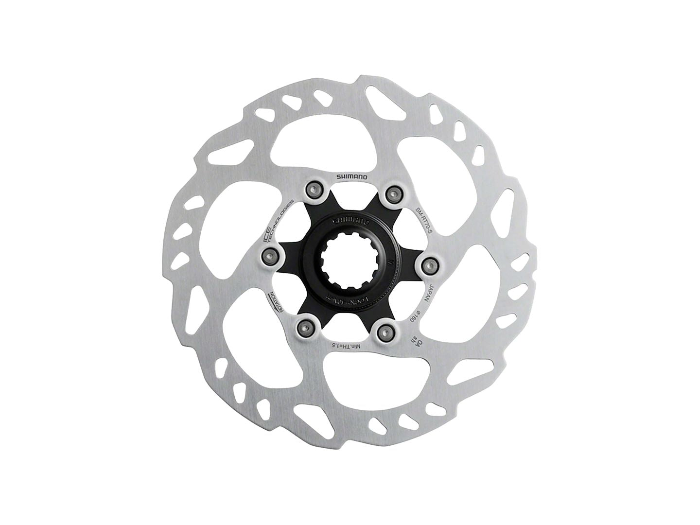 Shimano SLX SM-RT70-SI Disc Brake Rotor - 160mm Center Lock Silver. Shimano SLX SM-RT70 disc brake rotors deliver powerful and consistent brake performance for all riding conditions. The ICE TECHNOLOGIES rotor significantly reduces heat build-up in the brake system to ensure consistent high performance braking even on the steepest downhill stretches. Shimanos center-lock mounting system makes installing and removing rotors quick and easy thanks to the spine mount and lock ring design.3-layer structure with aluminum core and two stainless steel outer layers reduces rotor surface temperature approximately 100 degrees Celsius compared to all-steel rotors